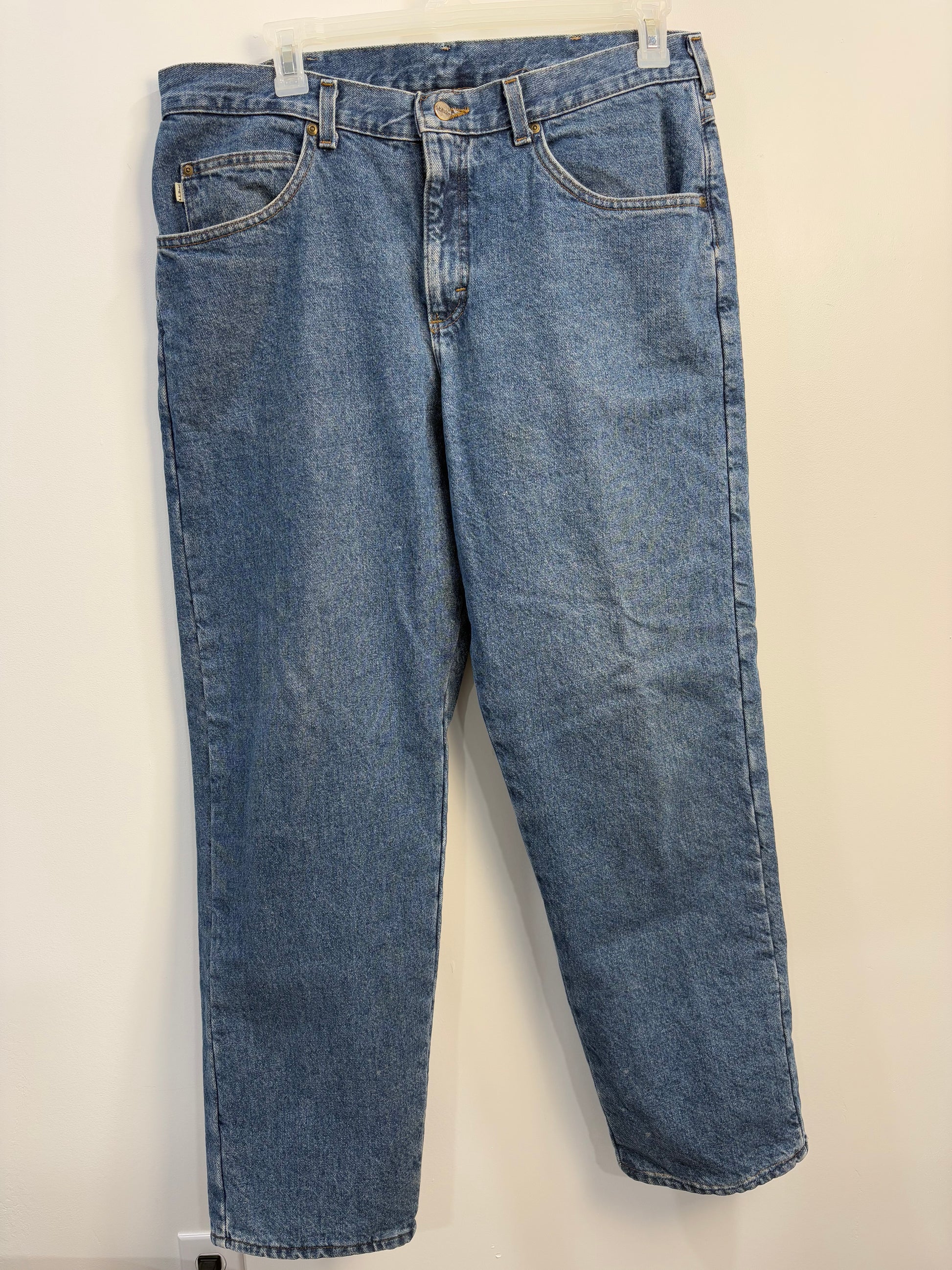 LL Bean Plaid Lined Jeans (38x32)